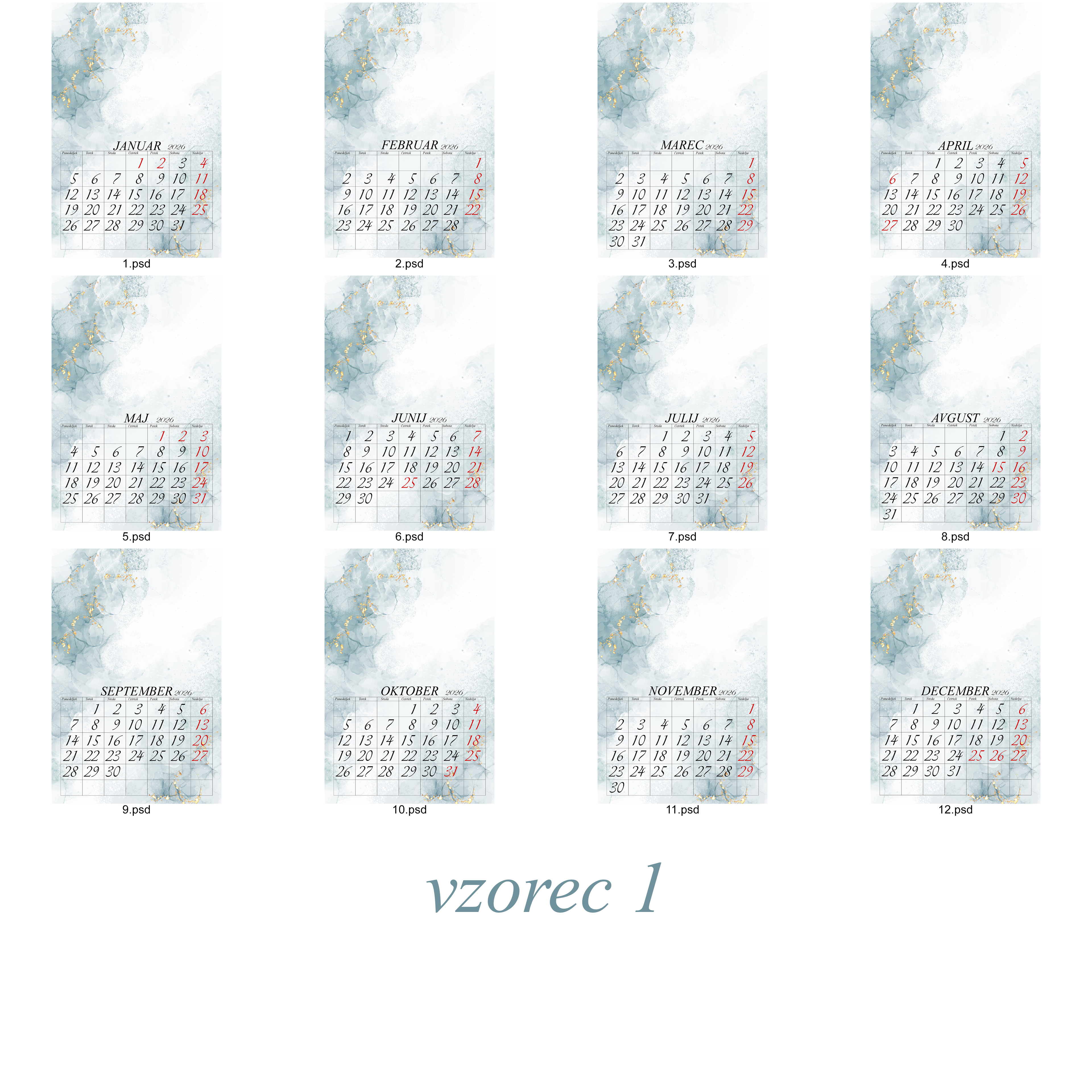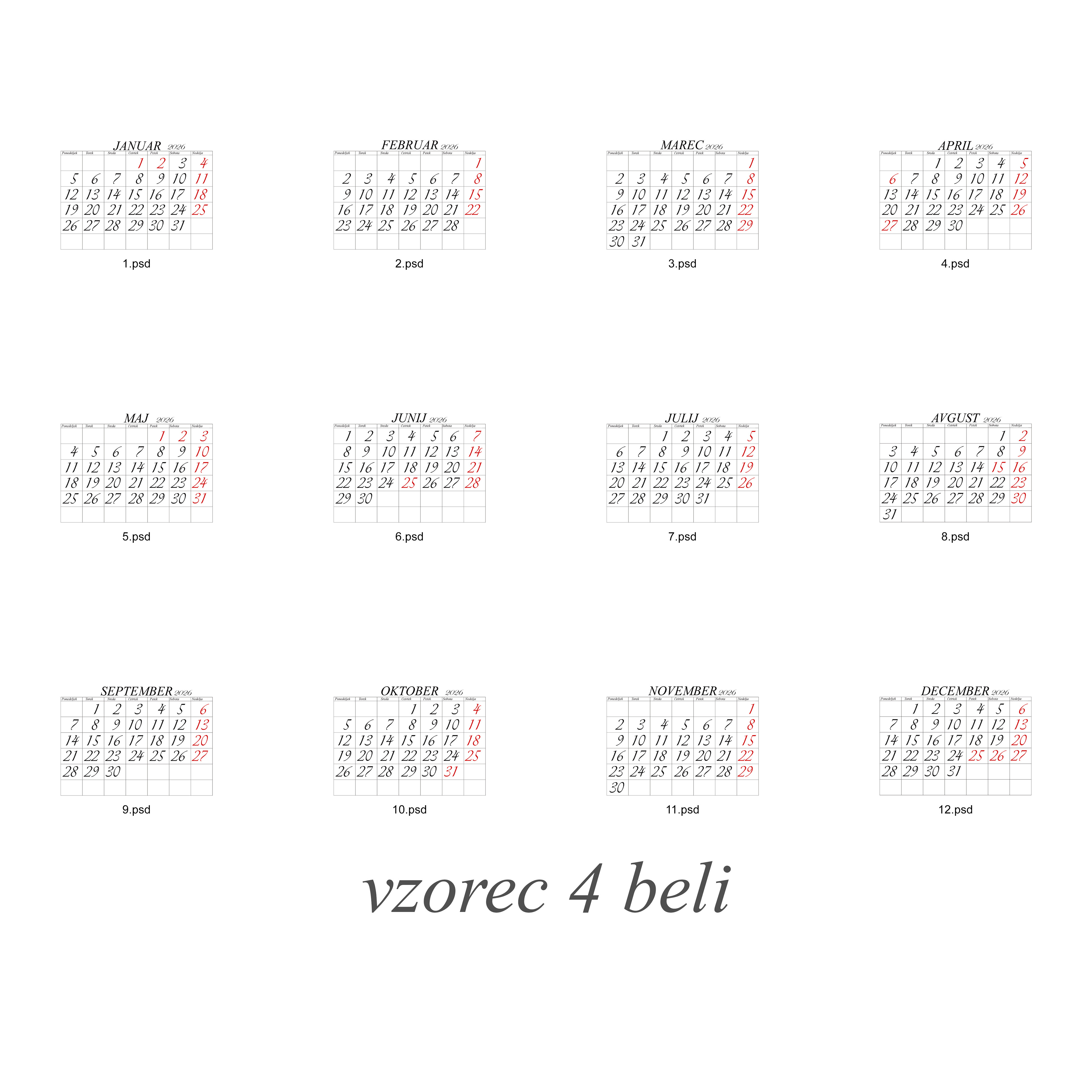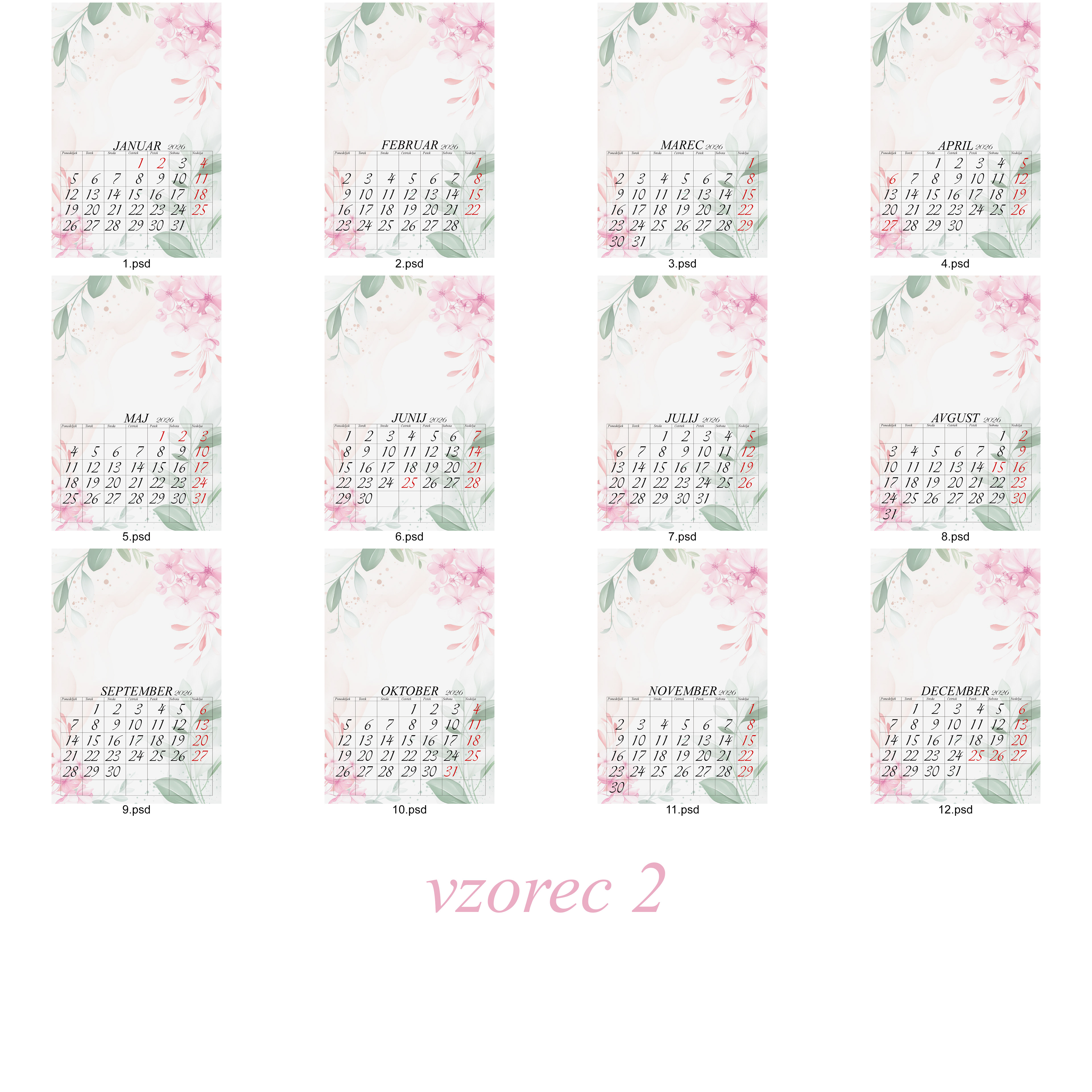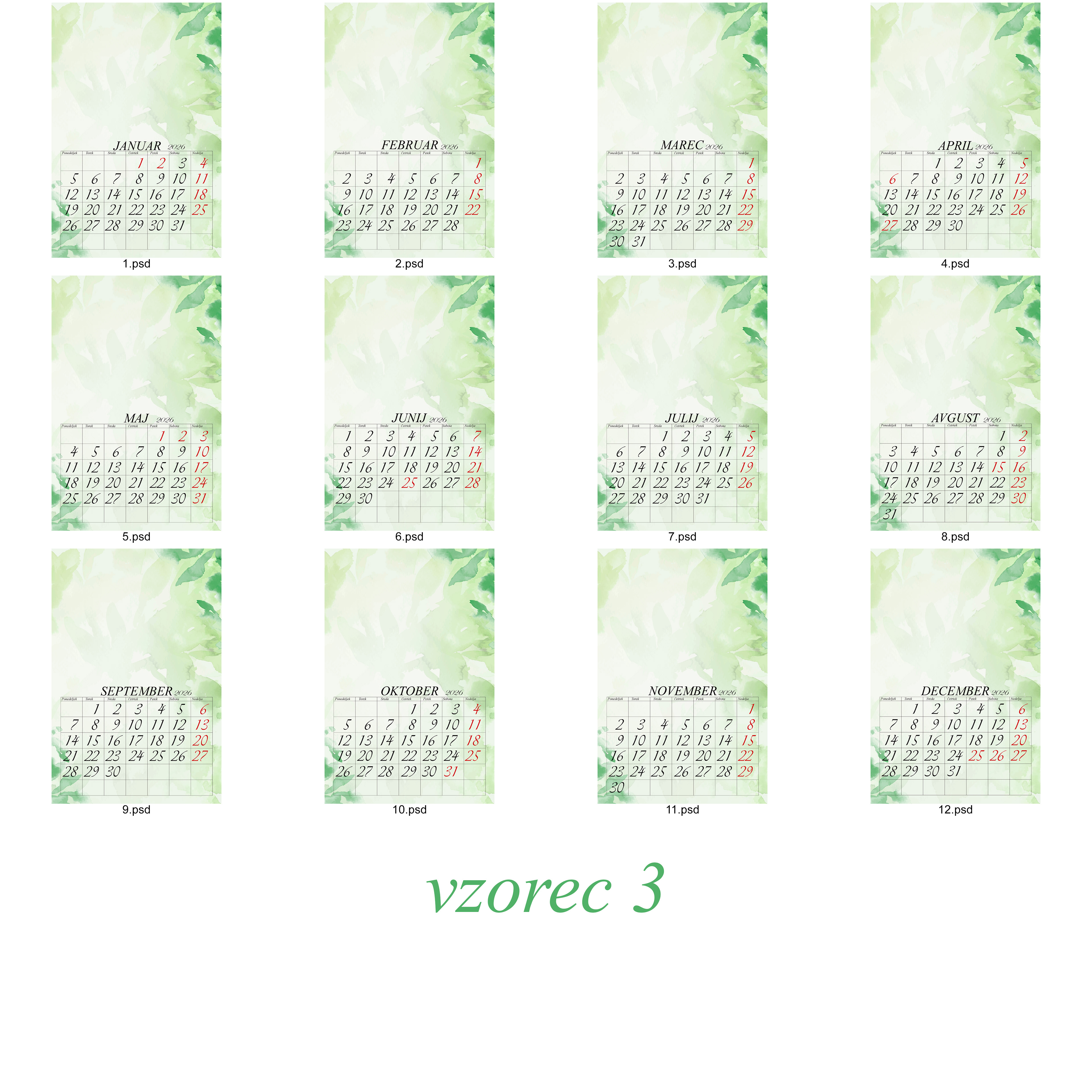 Cena 12 listnega koledarja 20x30cm je 35 eur z eno fotografijo na stran.