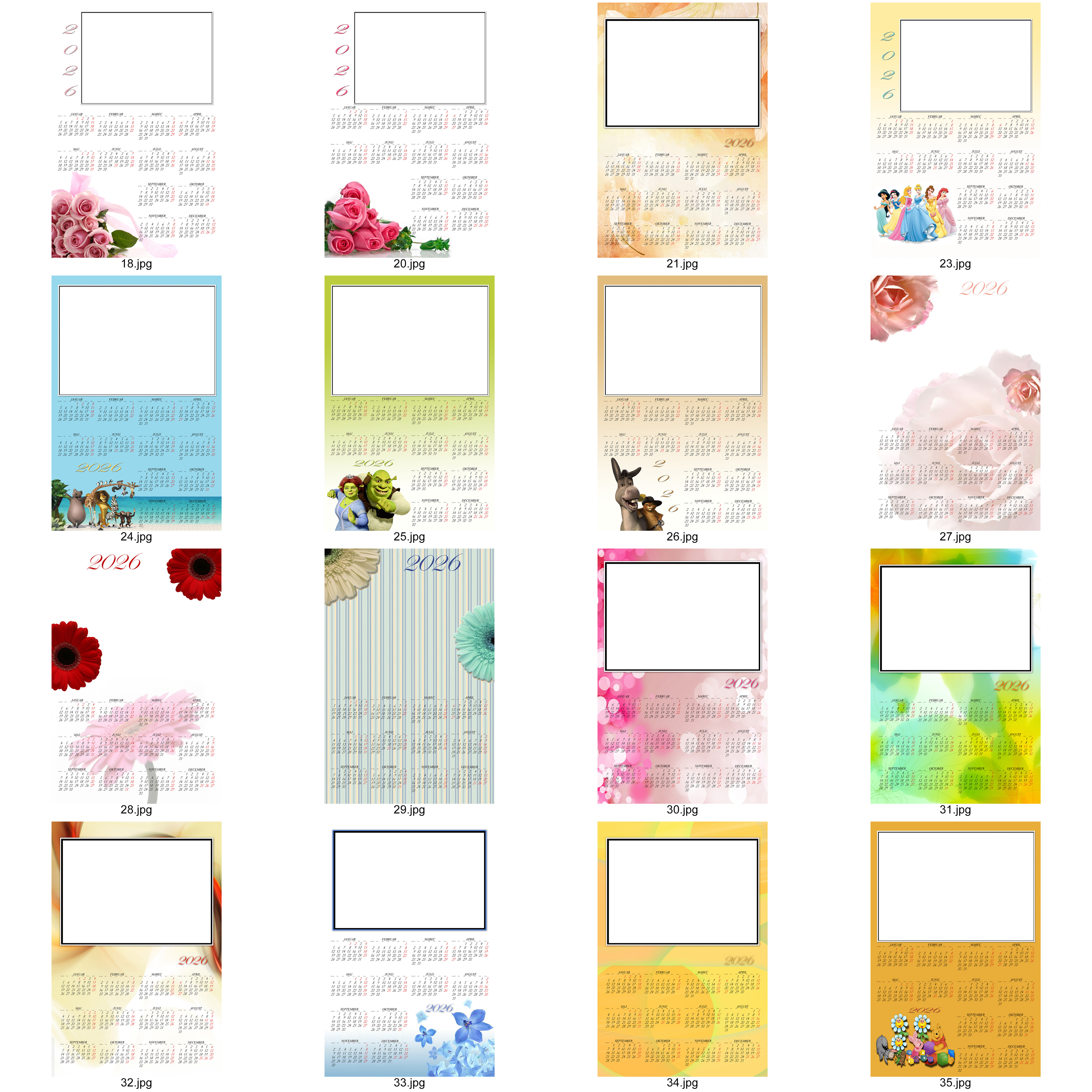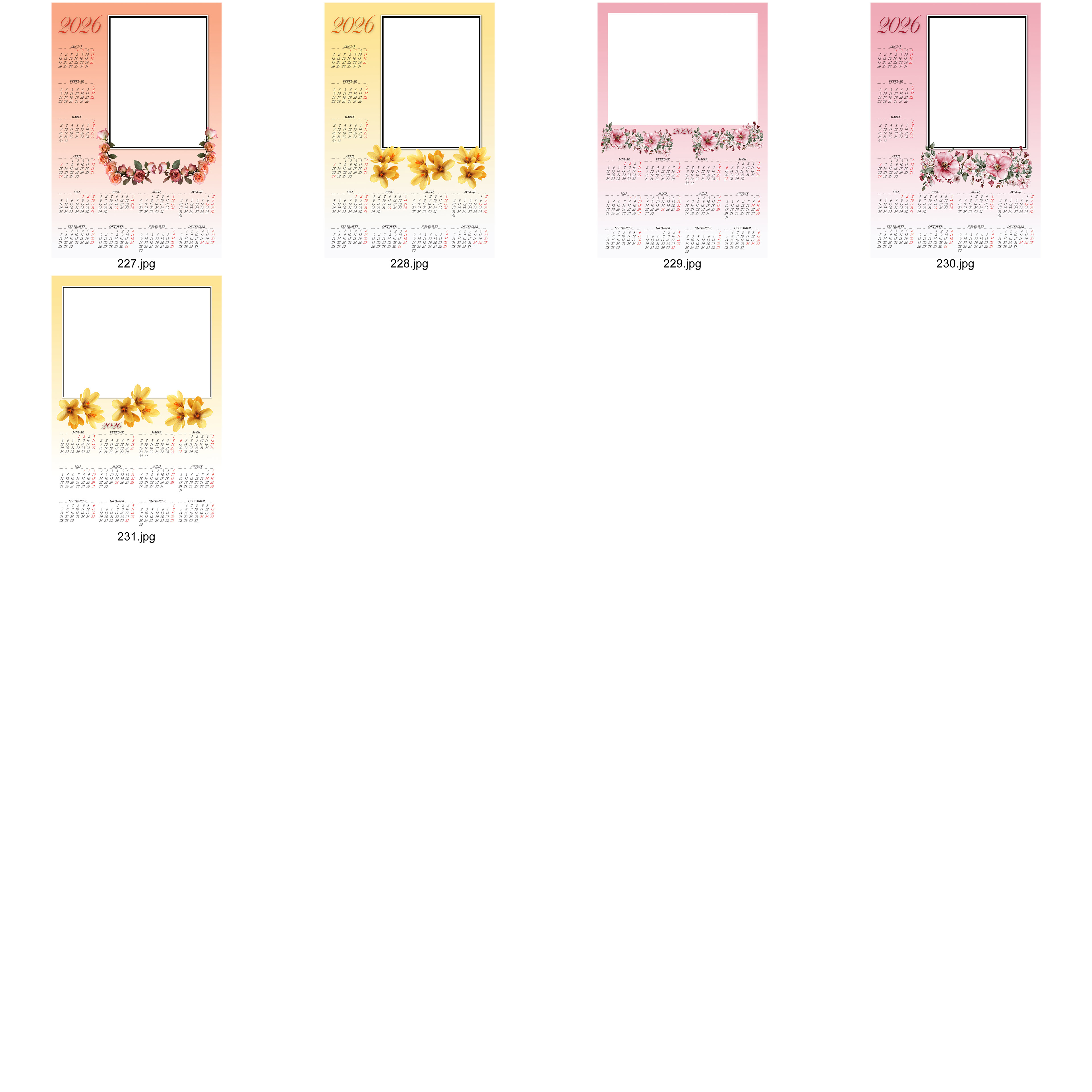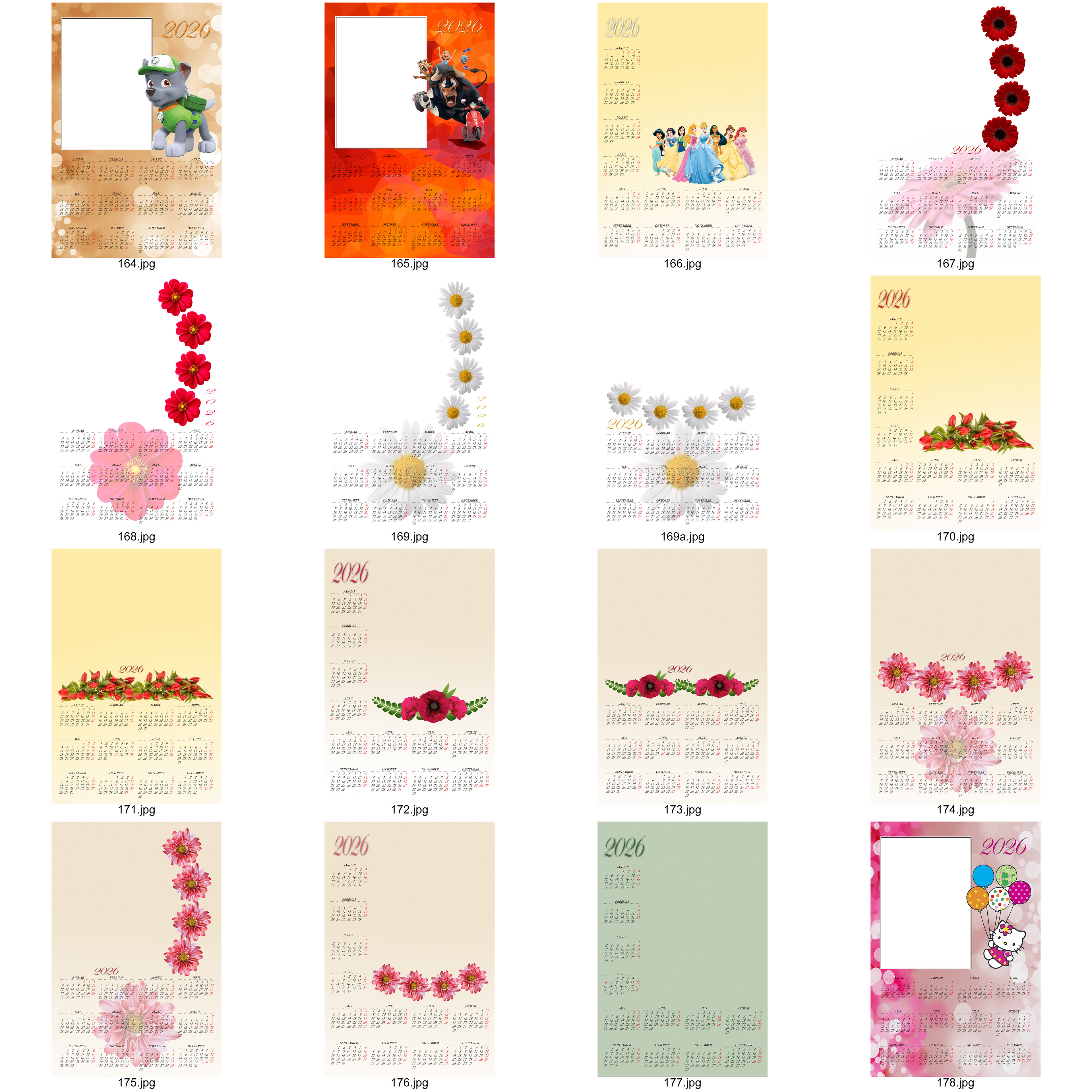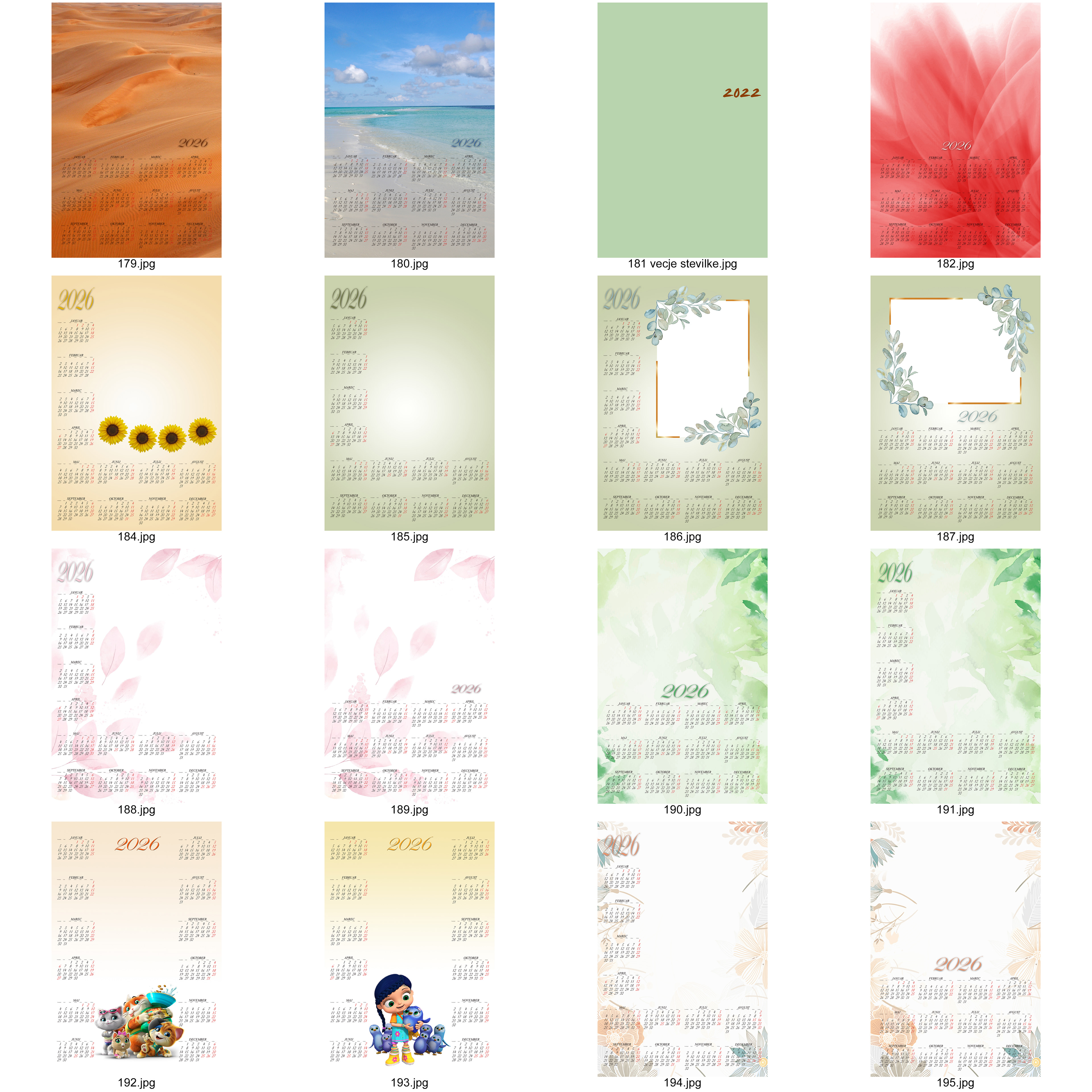 Iz vašega posnetka vam izdelamo foto koledarje v različnih velikostih (20x30cm, 30x45cm). Spodaj si lahko ogledate predloge oštevilčenih koledarjev. Vašo fotografijo nam lahko pošljete na mail s številko izbranega koledarja, zraven pa pripišite še v kakšni velikosti ga želite.
