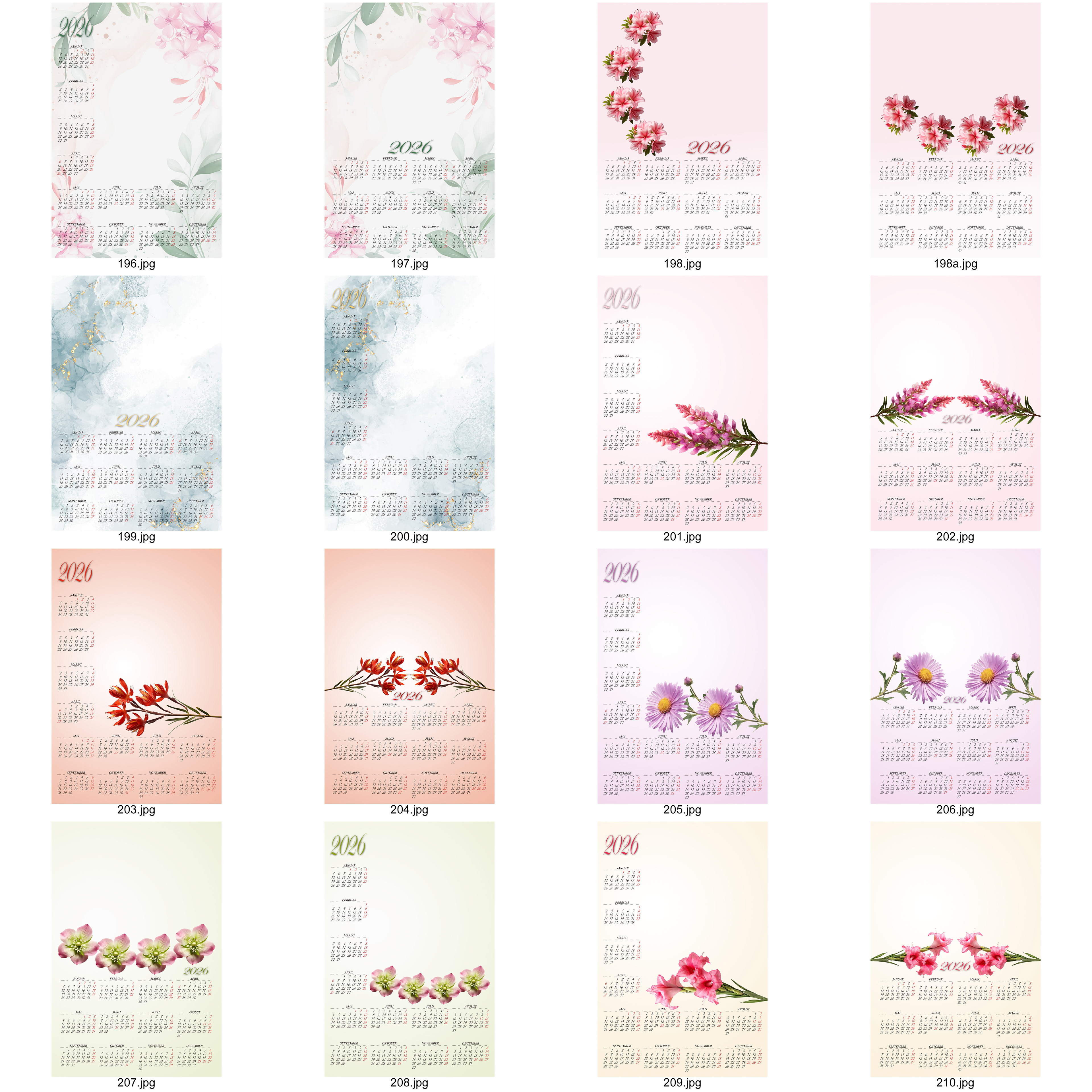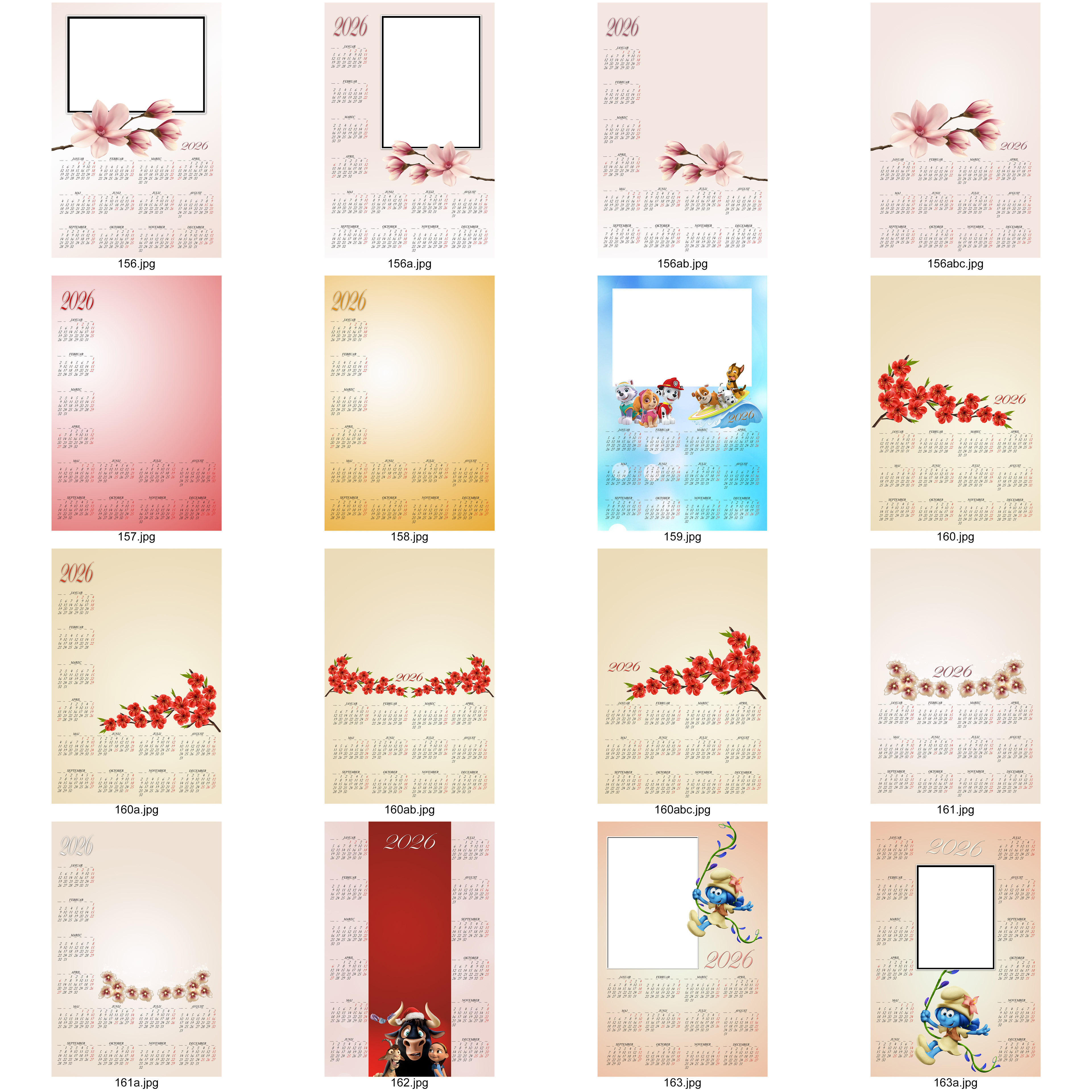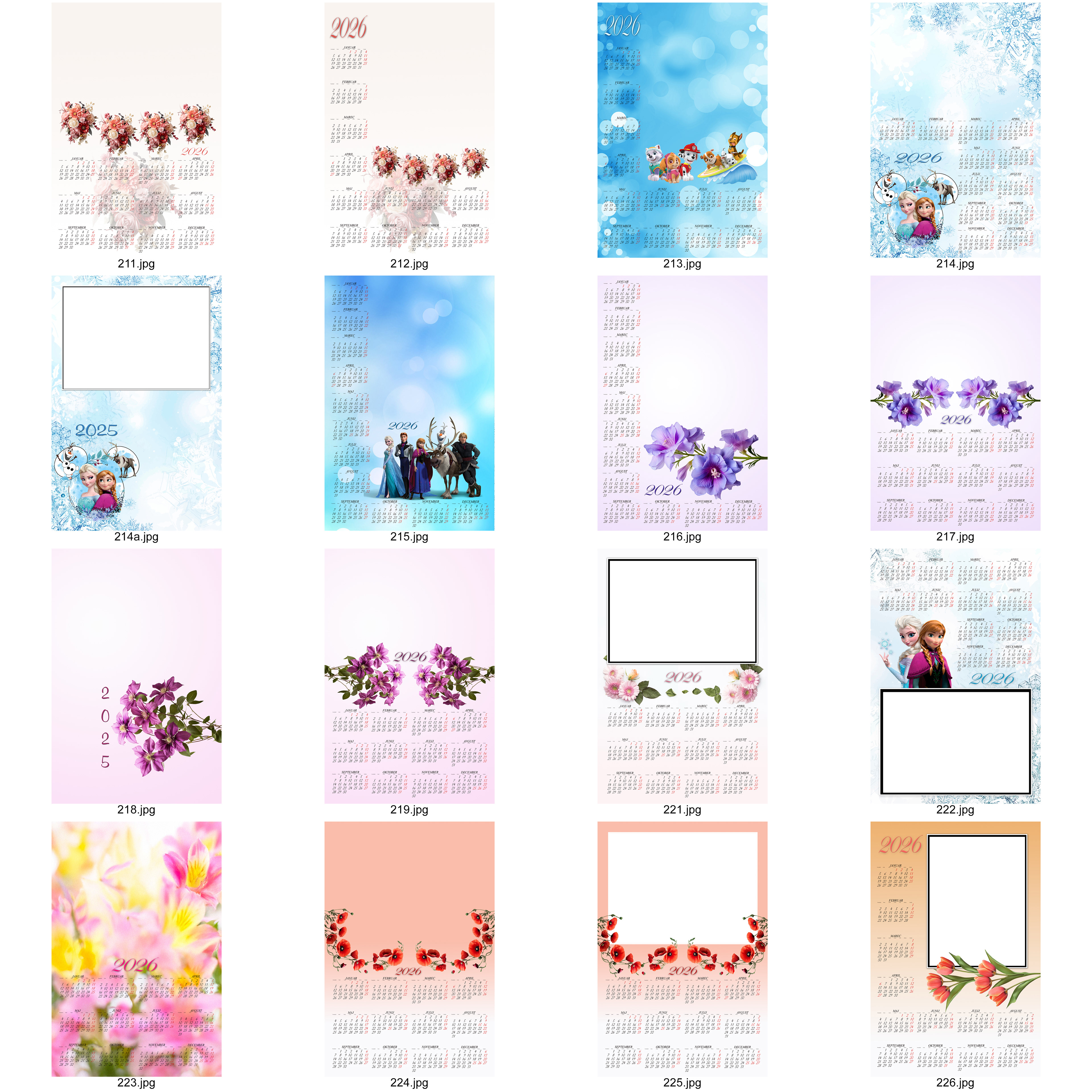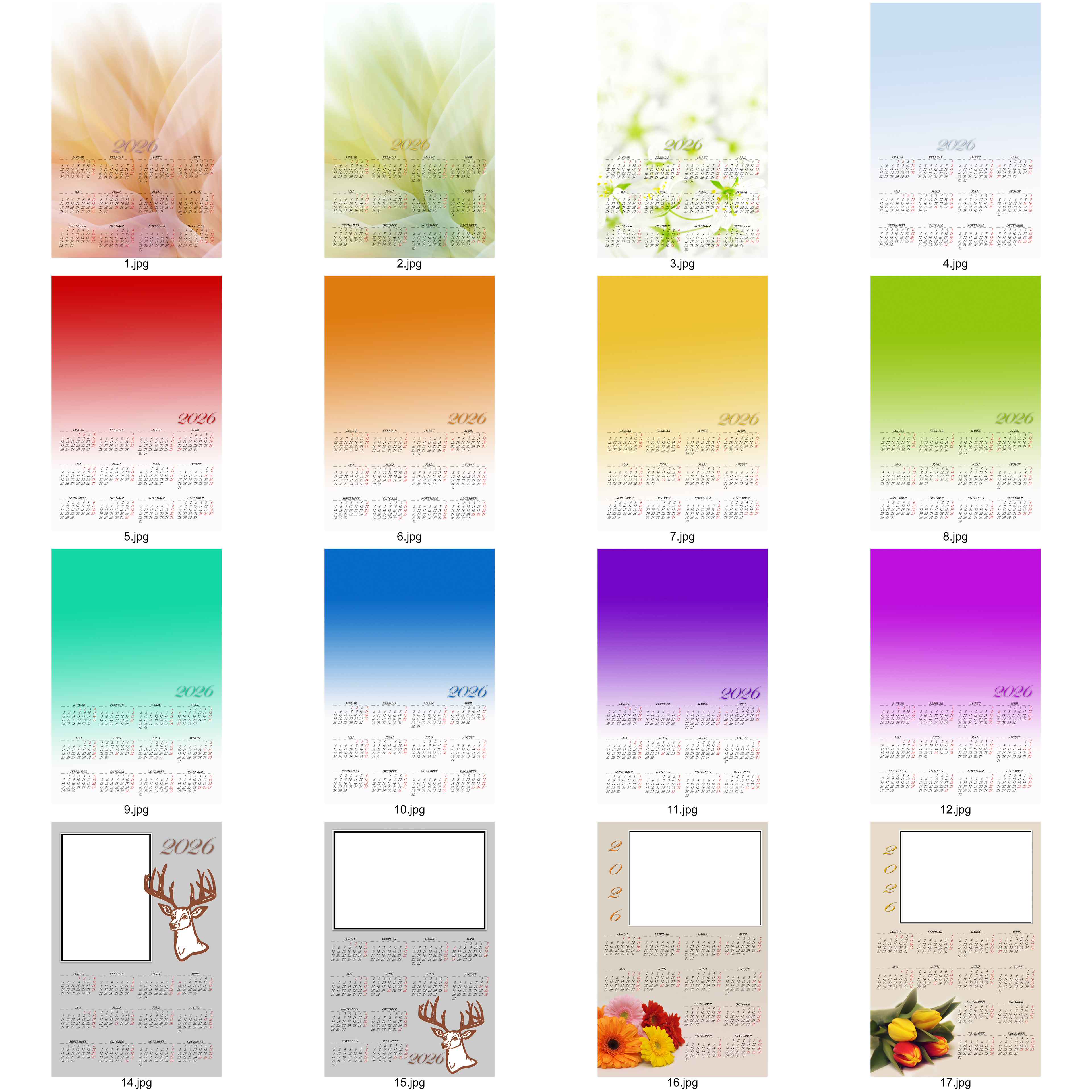 Iz vašega posnetka vam izdelamo foto koledarje v različnih velikostih (20x30cm, 30x45cm). Spodaj si lahko ogledate predloge oštevilčenih koledarjev. Vašo fotografijo nam lahko pošljete na mail s številko izbranega koledarja, zraven pa pripišite še v kakšni velikosti ga želite.
